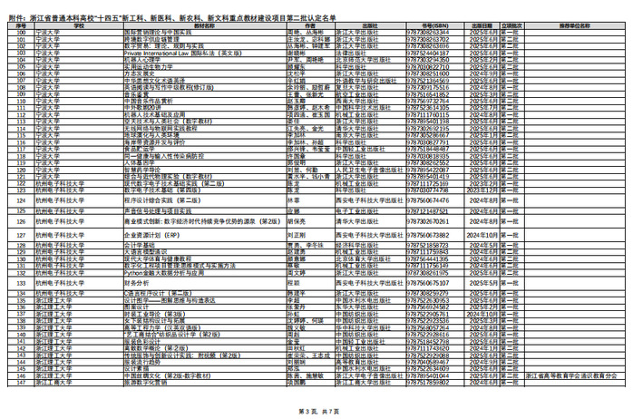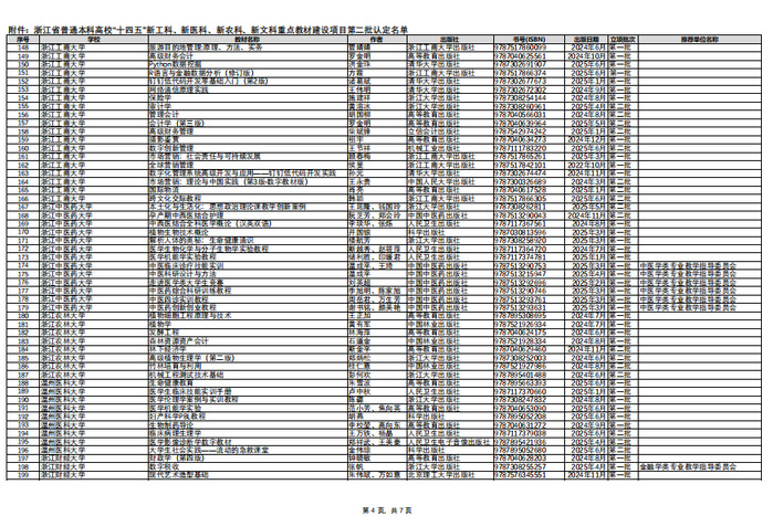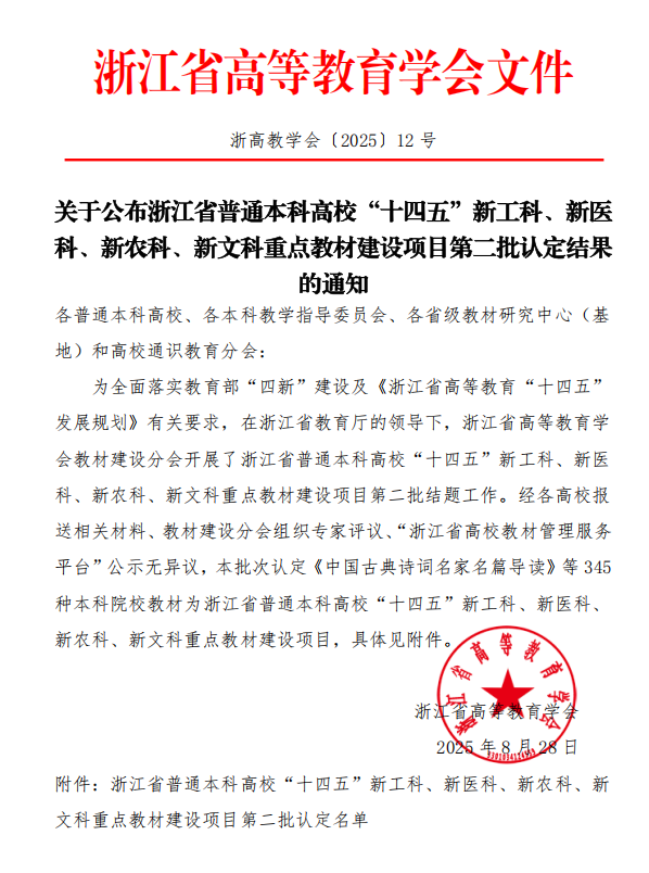 关于公布浙江省普通本科高校“十四五”新工科、新医科、新农科、新文科重点教材建设项目第二批认定结果的通知