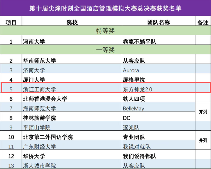 12月7日第十届尖烽时刻全国酒店管理模拟大赛总决赛在广西圆满落幕。我校有1支队伍闯入决赛,时隔4年,再次获得全国一等奖的好成绩,同时还有5支队伍获得全国三等奖。